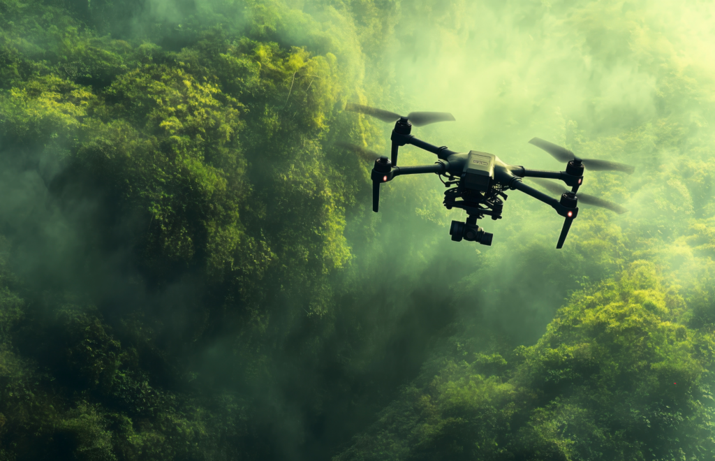 El uso de drones en la conservación ambiental ha emergido como una herramienta revolucionaria para el monitoreo y protección de ecosistemas forestales (Fig.1). Estos vehículos aéreos no tripulados permiten acceder a áreas remotas y recopilar datos precisos en tiempo real, facilitando la detección de actividades ilegales y el seguimiento de la biodiversidad. Organizaciones de conservación han adoptado esta tecnología para detectar invasiones ilegales en territorios indígenas y monitorear la salud de los bosques [9].
